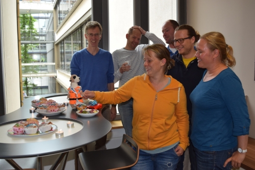 Viele Kollegen sind gerade auf Dienstreise oder schon im Urlaub, aber Fred fand die Feier auch mit kleiner Crew schön. Natürlich bekam er auch ein Geschenk: