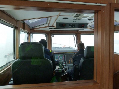 With the pilot boat we went over to the harbor pilots and picked up the two colleagues.