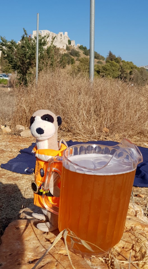 Fred and I, with the family, went to special place, located on the beautiful lower region of Galil mountains. Looking at Haifa Bay and the ships at anchore, waiting for their turn, over view the valley (we say Wadi) stands tall Yehiham fortress. It was build by the crusaders to guard the main road... For more details, try Wikipedia. Fred and us just wanted pitch of beer to enjoy and watching all the view. Under the fortress there is a craft brewery called Malka (Queen).